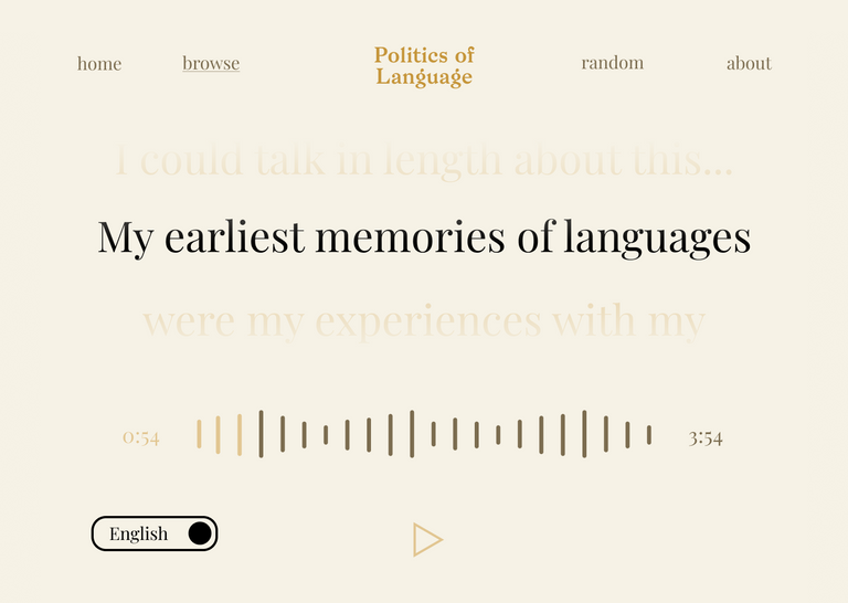 In terms of accessibility, we are planning on having either synced transcripts or captions playing alongside the audio. We are also exploring the option of allowing users to toggle between the original language and English (see the last few pages of this document for potential implementations and styling).