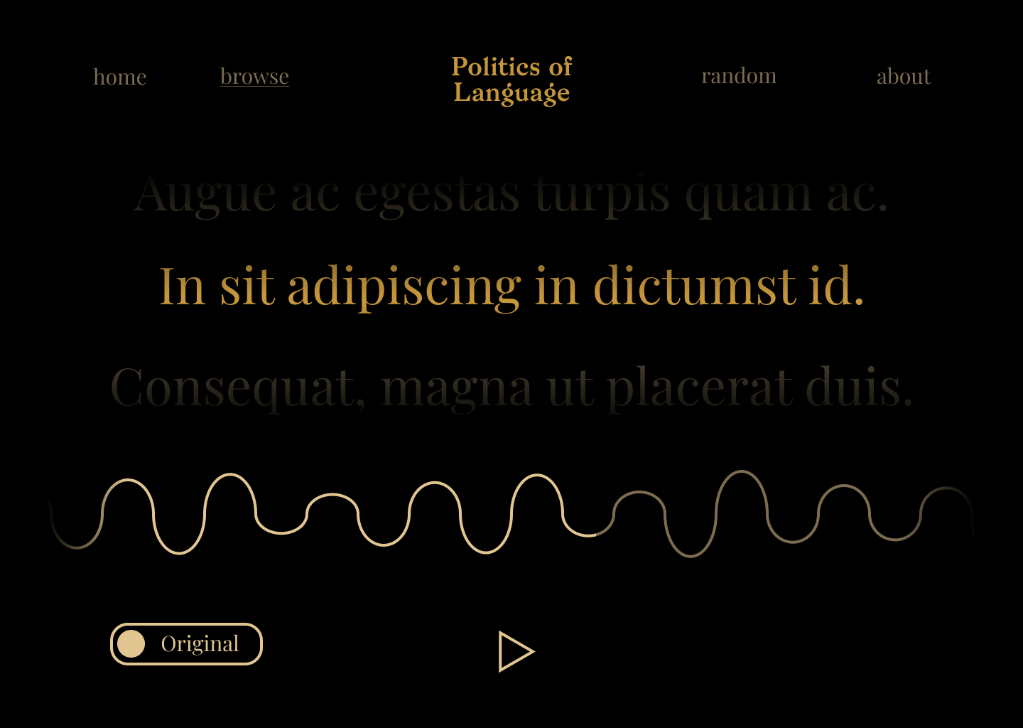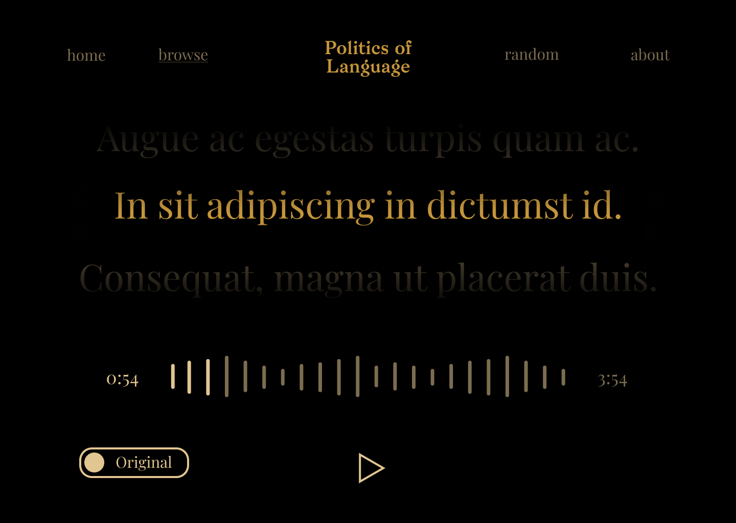 In terms of accessibility, we are planning on having either synced transcripts or captions playing alongside the audio. We are also exploring the option of allowing users to toggle between the original language and English (see the last few pages of this document for potential implementations and styling).